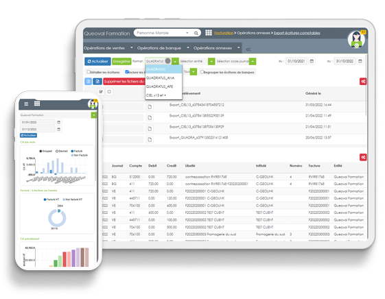 Queoval Formation vous propose une solution simple et efficace pour l'export de vos écritures comptables de ventes et de banques. Grâce à notre expertise auprès des experts-comptables, nous avons paramétré un grand nombre de fichiers d'export comptables qui s'adaptent à l’ensemble des logiciels comptables du marché.